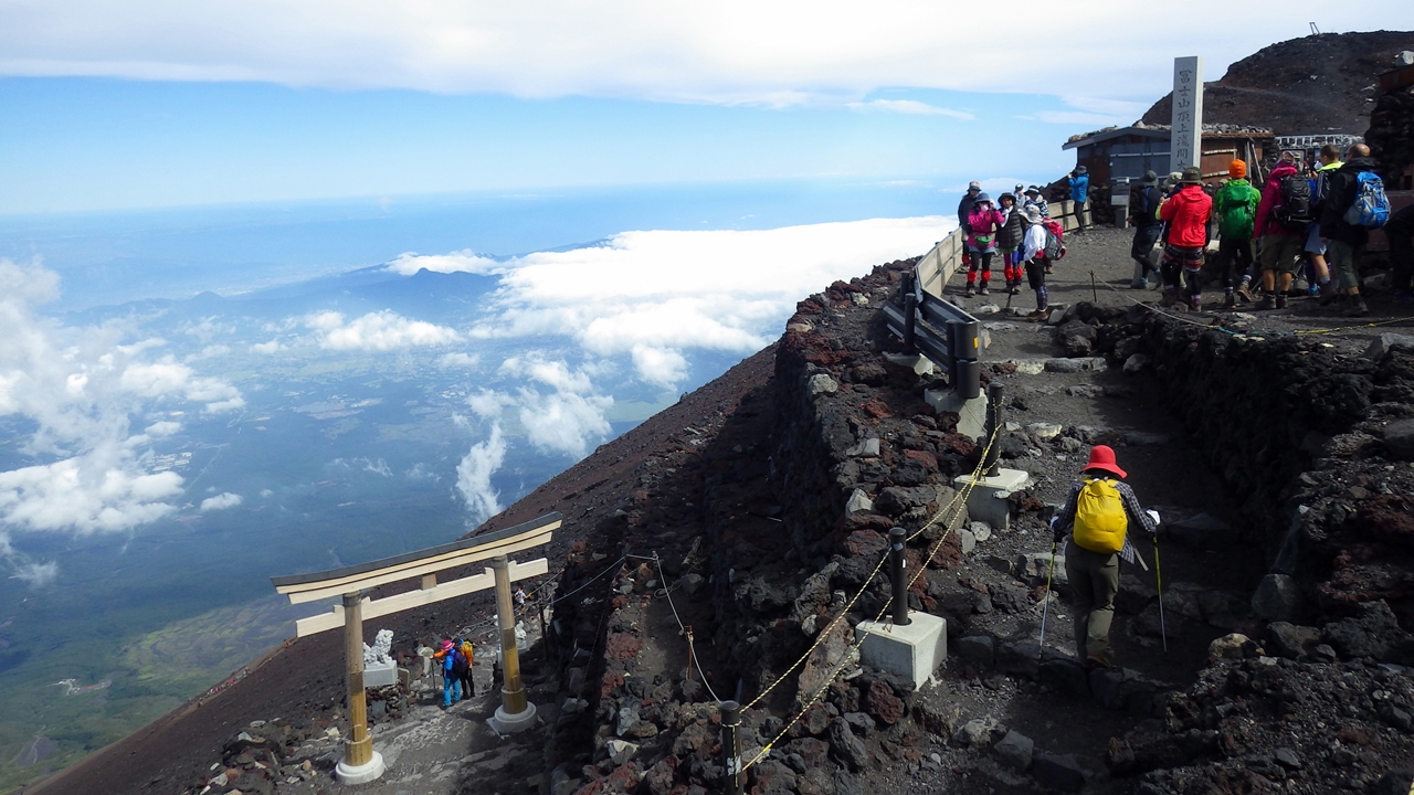 次に、静岡・山梨両県の開山日については、多くのニュースで報じられたとおりです。今年の積雪が非常に多かったこともあり、静岡県側の山開きが7月10日だったのに対し、山梨県側は例年通りの7月1日。「別にいいじゃん」という声もありますが、山梨県側の吉田口ルートは本八合目から上が須走口と合流しているため、山頂の環境省設置トイレや山小屋が開いていません。つまり吉田口から7月10日までの間に登山をした登山者は、頂上付近ではトイレが利用できないんです。これで何が起こるかというと、トイレの近くなどでトイレを済ませた人のし尿やトイレットペーパーなどが、山頂に散乱してしまうという由々しき事態です。これを何とかしようと、吉田口五合目で携帯トイレを配布したのですが、新聞報道では配布数6,580個に対して回収がたったの33個。回収率は0.5%でした(7月1日~7月7日)。この期間、私は須走口の山頂にいけなかったので実際の様子を確実にお伝えすることはできませんが、お山開きの日を両県で一緒にできれば、こうしたヘンな差は生まずに済むのになぁと思ってしまいます。歴史的に継承していることはもちろん大切ですし、それがあるからの文化遺産でもあるわけですが、登山者の安全や快適な利用についてもう少し歩み寄れないものかと思ってしまいます。ちなみに、閉山(冬季閉鎖)も静岡県側では9月10日であるのに対し、山梨県側では9月15日となっています。