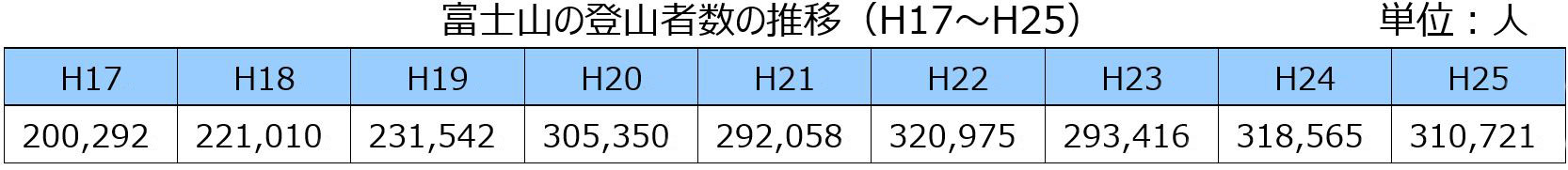 原因としては、残雪の影響で山頂までの登山道の開通が例年より遅れたルートがあったこと、梅雨明けまでに登山に適した天候の日が少なかったこと、マイカー規制期間が延長されたこと、いわゆる「弾丸登山」の自粛要請が功を奏していること、富士山の世界文化遺産登録によって様々な「規制」「制限」といった表現がなされ、登山者の富士登山に対する自制が働いたのではないかという推測、などなどの理由が取り沙汰されています。いずれにせよ平成20年以降の登山者数が30万人前後で推移している富士山では、今年は大幅に減少する見込みとなっています。