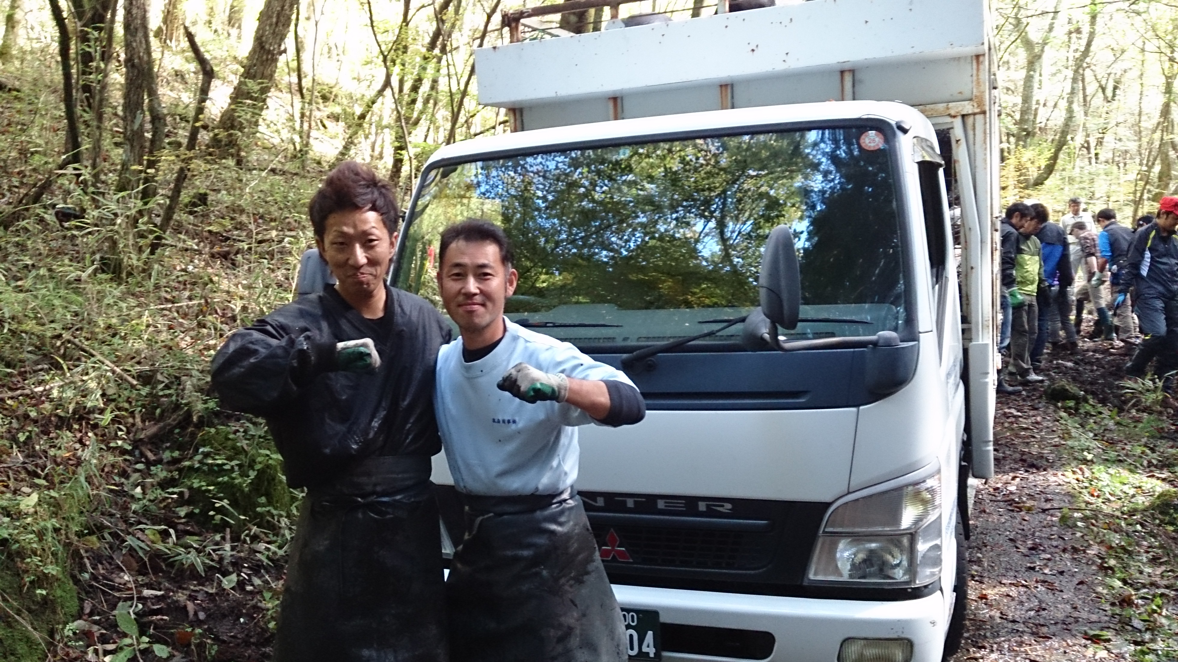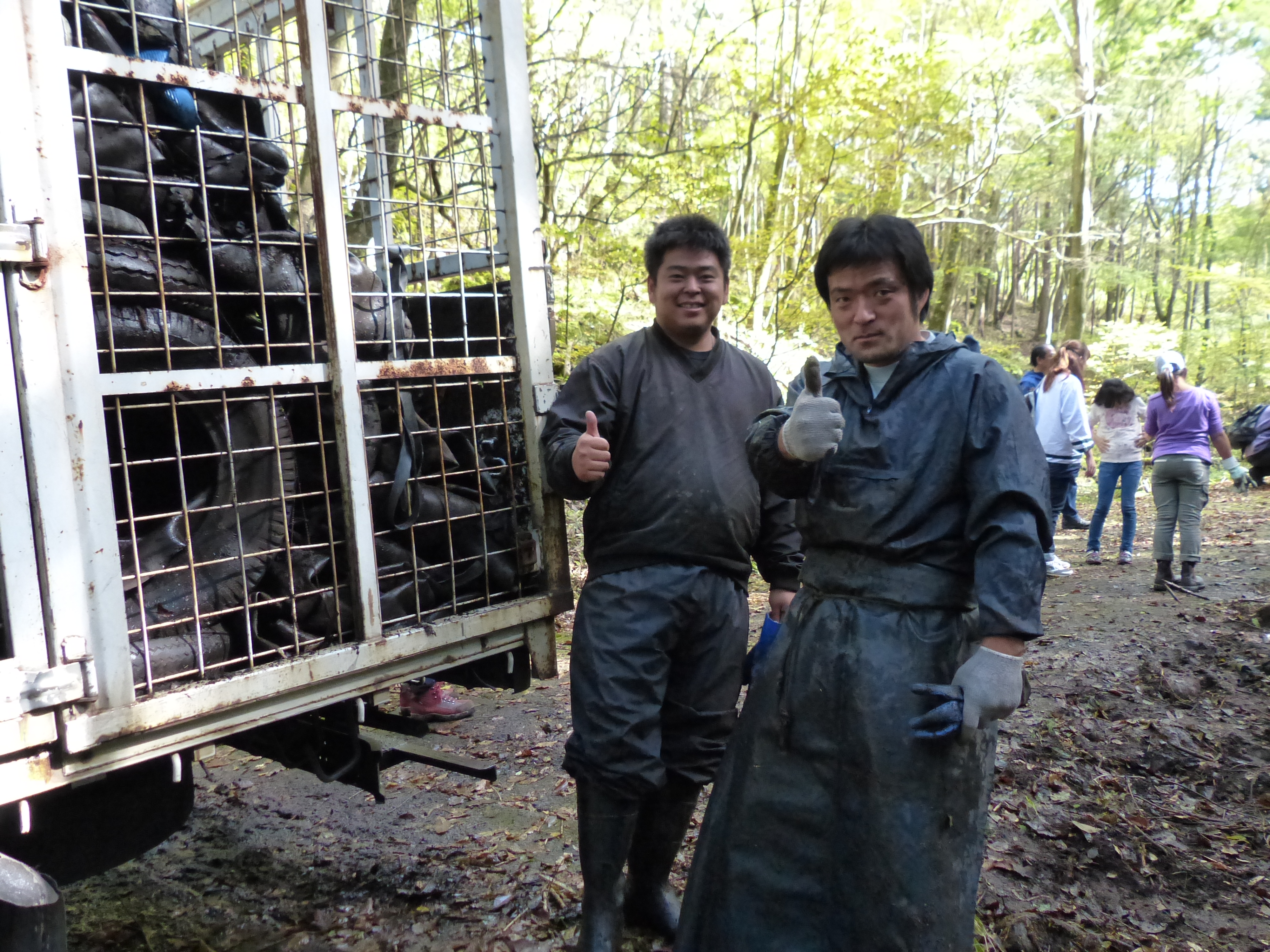 しかし男性のみならず女性やお子様もみんなで必死に積み込んだので、泥んこにまみれながらも手際良く積み込みが完了しました!