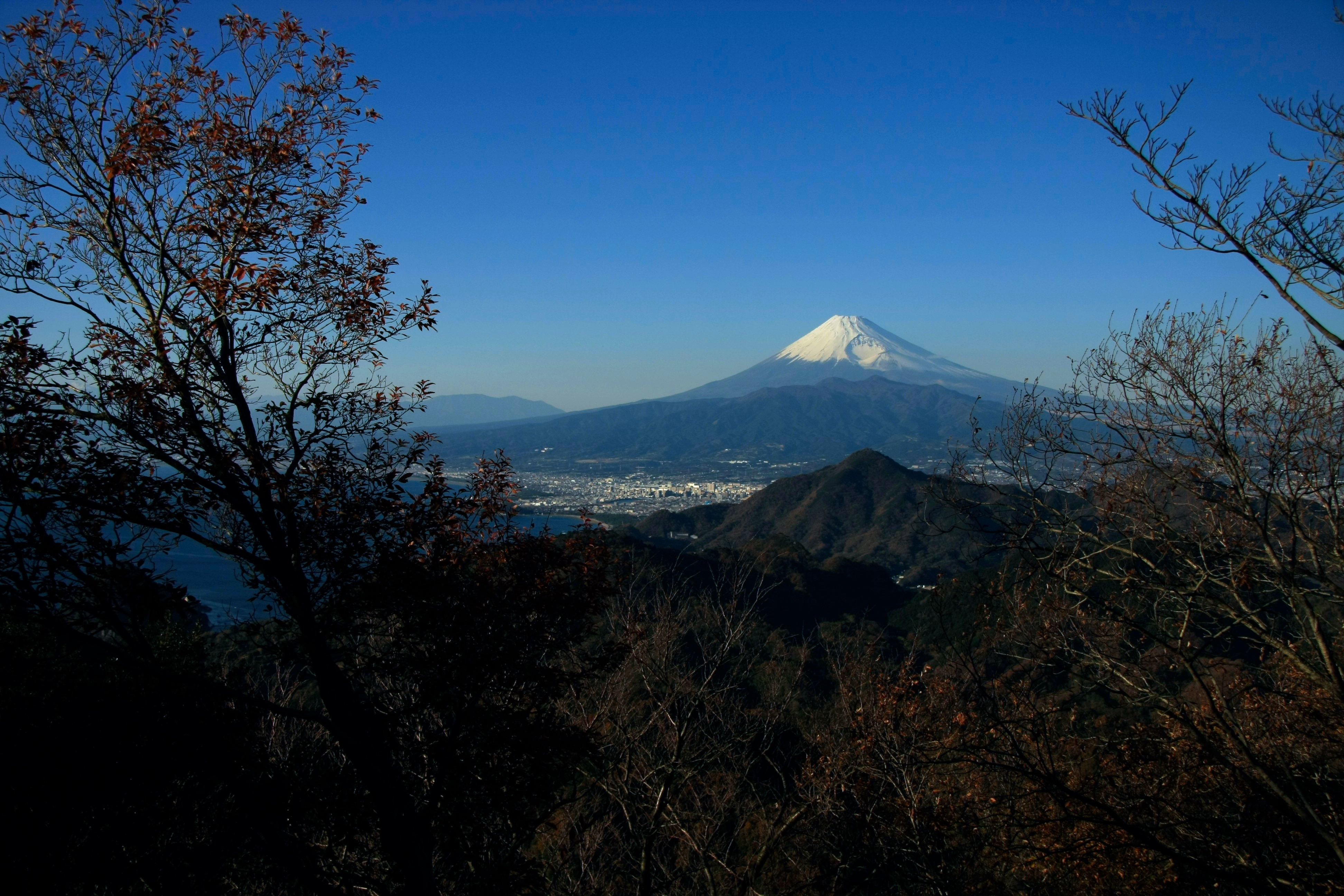 静岡県内では、結構色々な場所で富士山を姿を望むことができますよね。伊豆半島からはもちろんですし、浜松からも見ることができますよね。私は伊豆半島のおへそ、ともいうべき葛城山から遠望する富士山が非常に好きなんです(写真1枚目)。