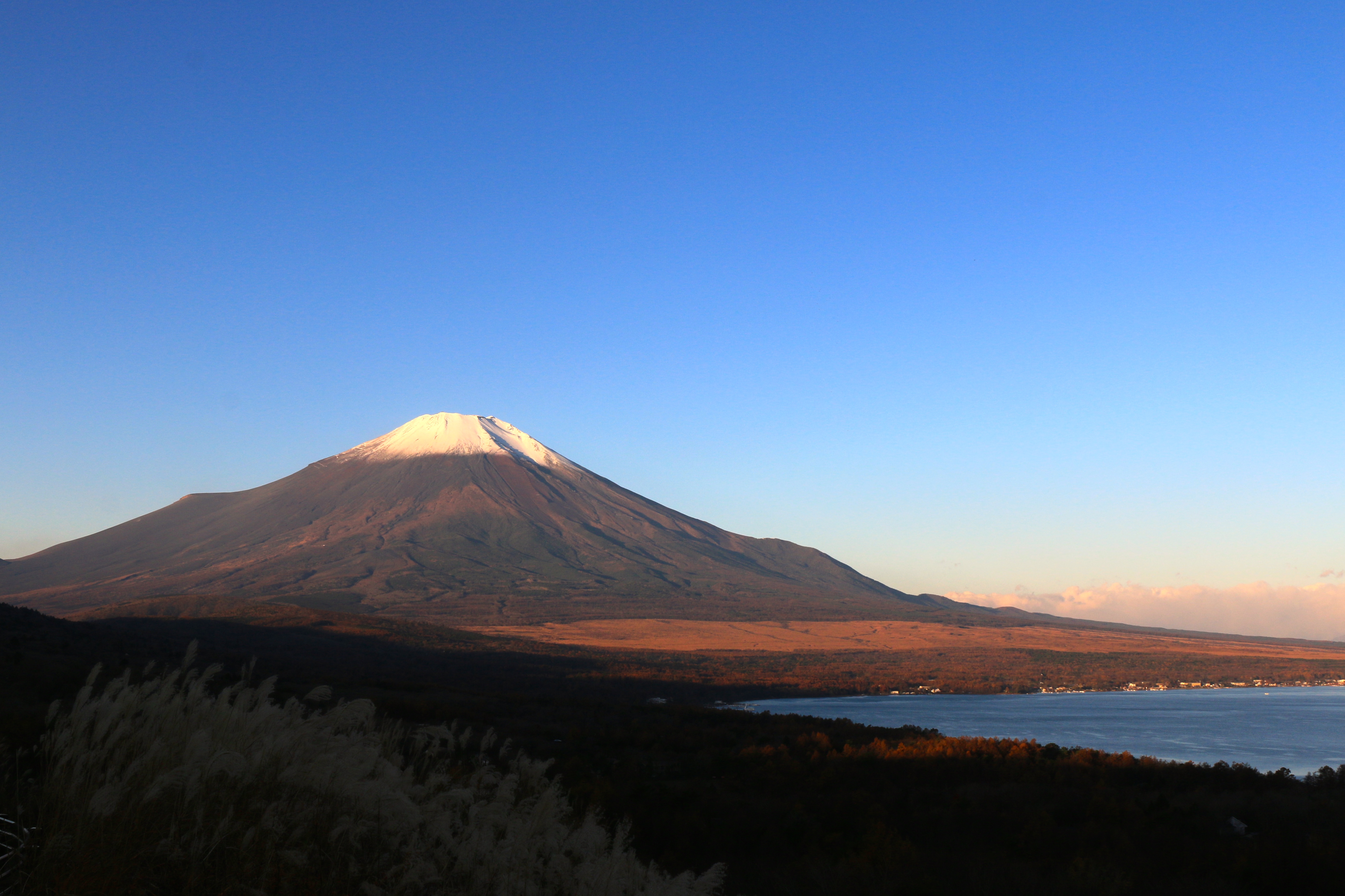 ちなみに今月の2枚目の写真は、山梨県と神奈川県県境にある「鉄砲木の頭(てっぽうぎのあたま)」という山から撮影した富士山です。別名明神山と呼ばれるこの山からは、妙に安定感のある大きな富士山のすそ野に山中湖が広がっているのですが、なんといっても素晴らしいのは車を止めて頂上までが歩いてたったの15分!ちょっとがんばってカヤ原を歩けば、非常に開けた眺望の素晴らしい山頂に着くことができるんです。