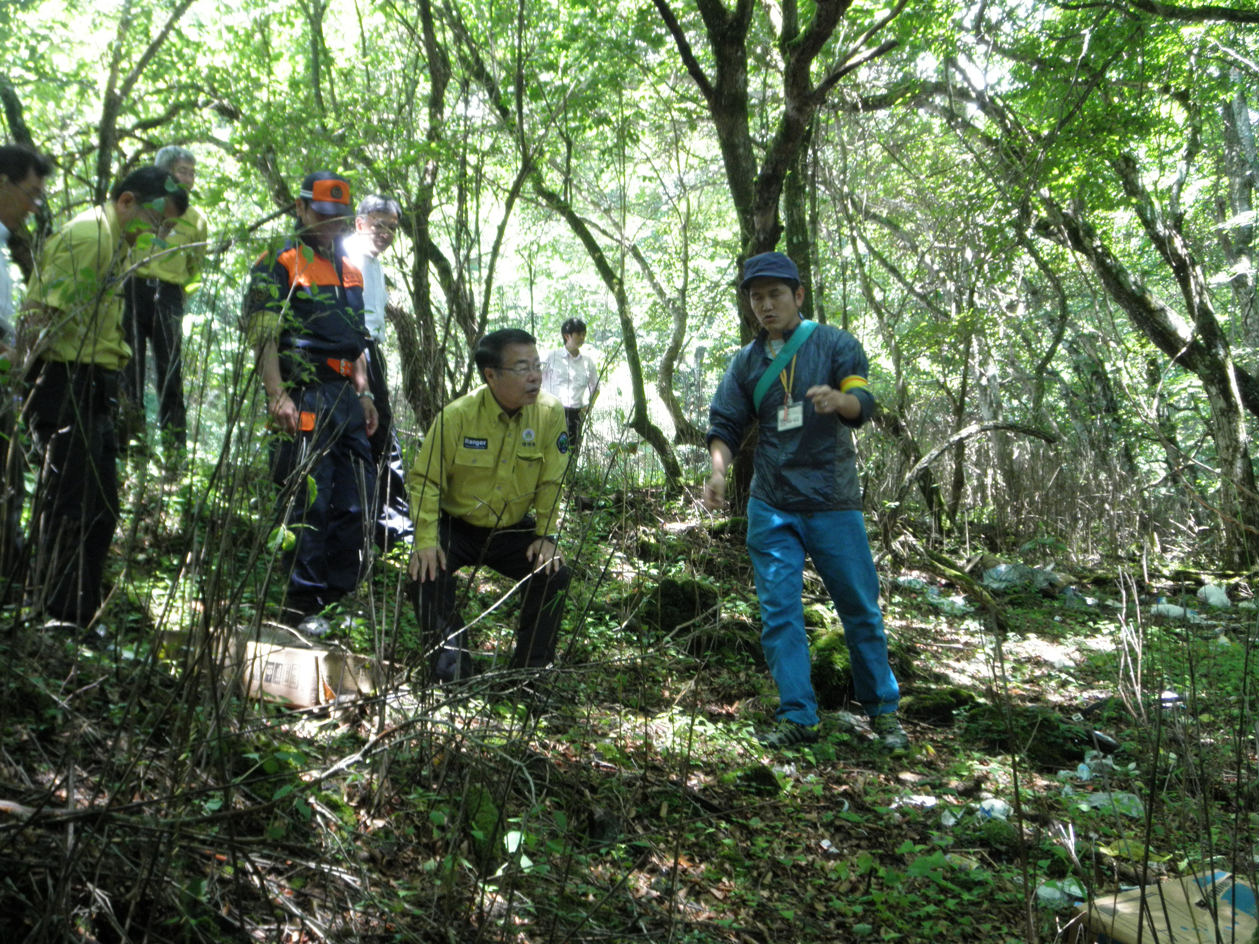 活動についての一連の説明の後には、富士山クラブさんが清掃活動された場所を例に、既にゴミが不法投棄されている現場を見ていただき、いまだにこういった不法投棄が後を絶たない現状をご理解頂きました。