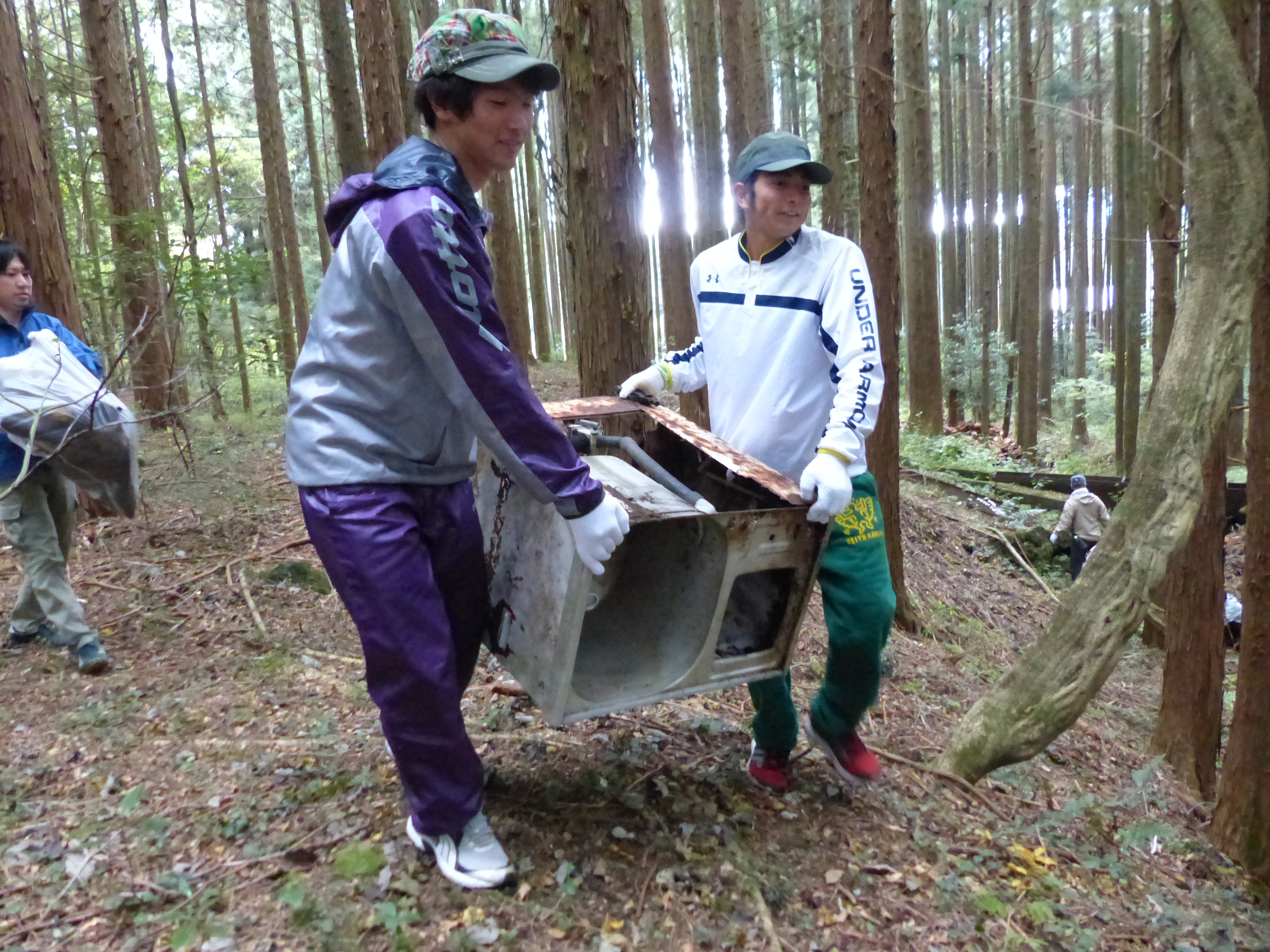 清掃の途中には心配していた雨も降り出し・・・。そんな中でも、子供も大人も一緒になってゴミの運びだしにラストスパート!