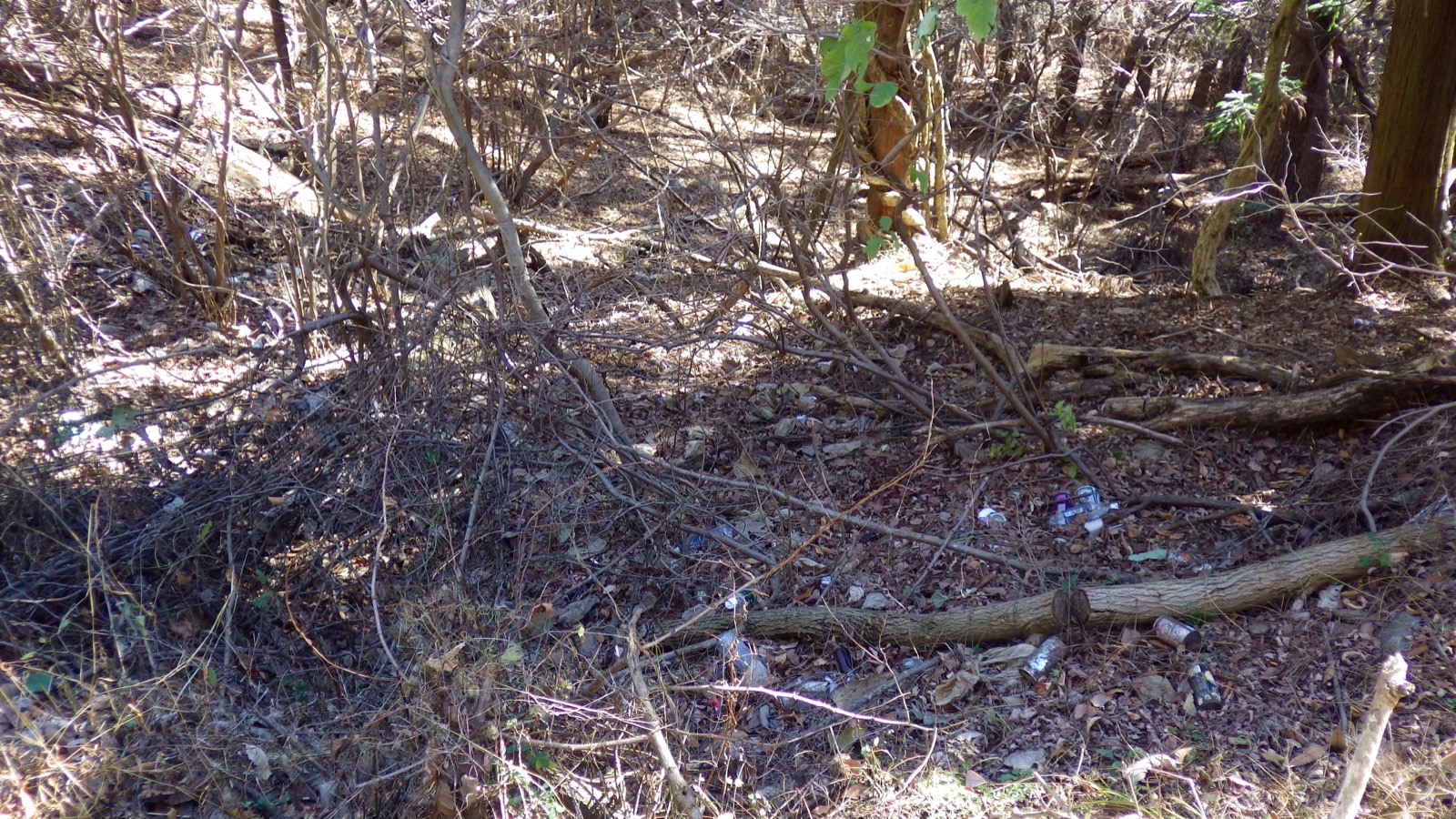 ヤブに隠れていたたくさんのポイ捨てゴミ(2015年11月28日撮影)