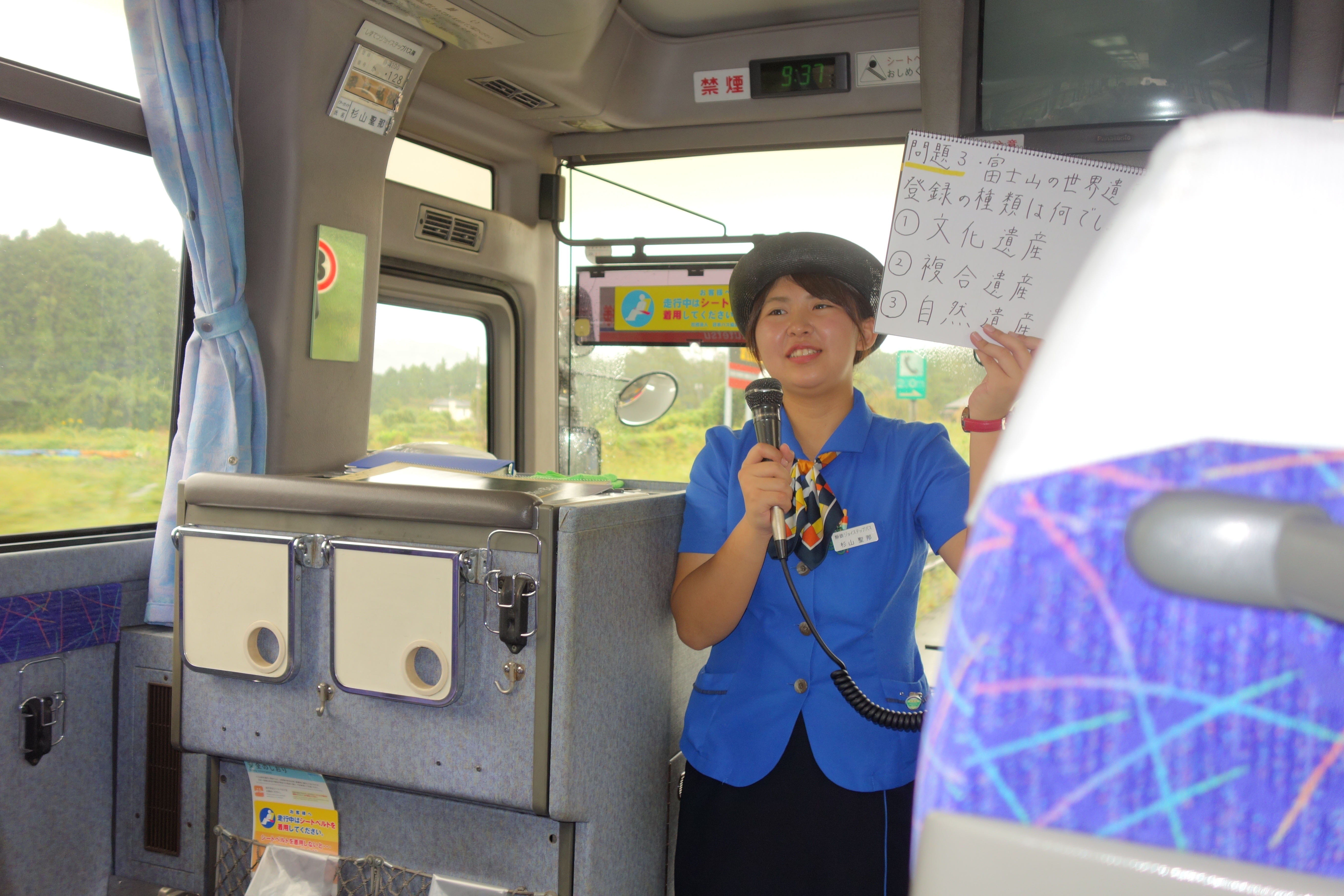 車中では富士山にちなんだお話、クイズ等をし、