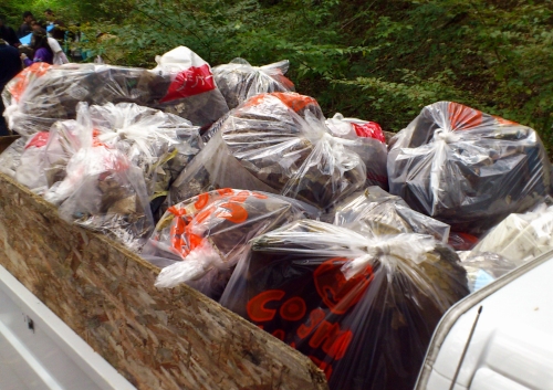 今回もまた、アルピニストの野口健氏を迎えて、参加者144名で720kgのゴミを回収。拾ったゴミは、タイヤや電化製品などの大きなものから、ガラスの破片やビニール袋など土に埋まった細かいものまで様々でした。