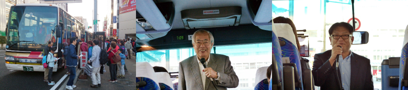 JR静岡駅前の集合場所にて点呼後、バスに分乗。出発にあたり、静岡県議会の天野進吾議員、佐地茂人議員が参加者の見送りに駆けつけて下さいました。