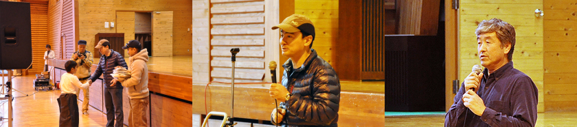 清掃活動を終えて野口氏からの挨拶とお楽しみ抽選会のプレゼント受賞式を行いました。